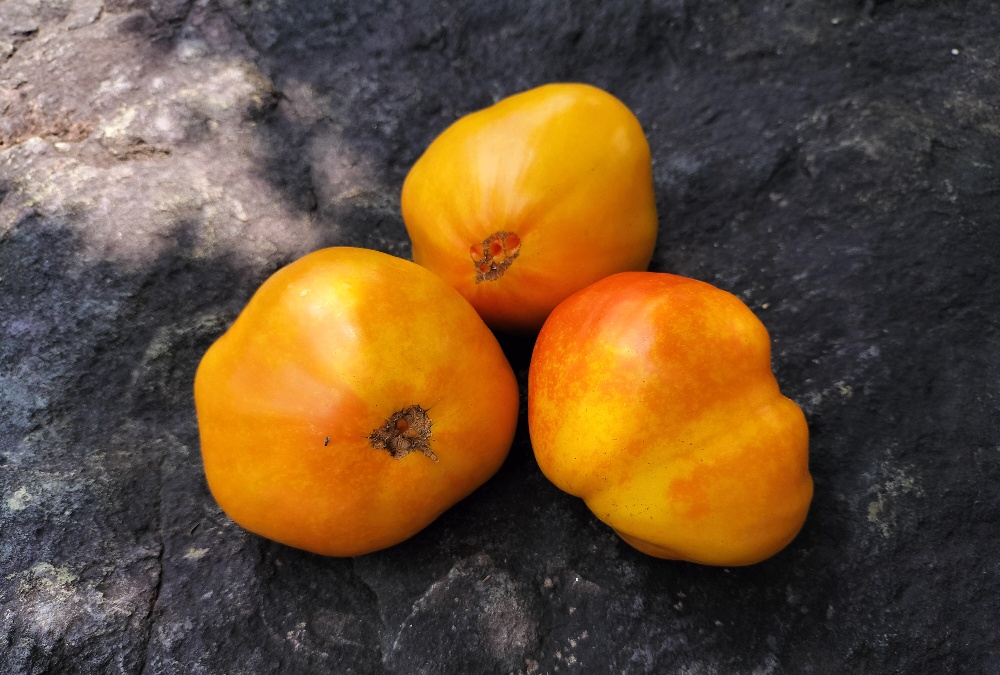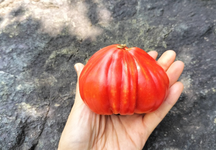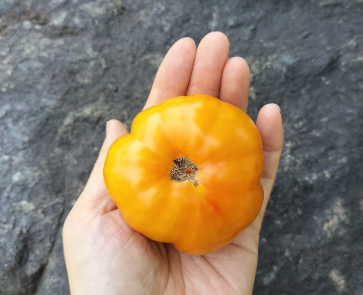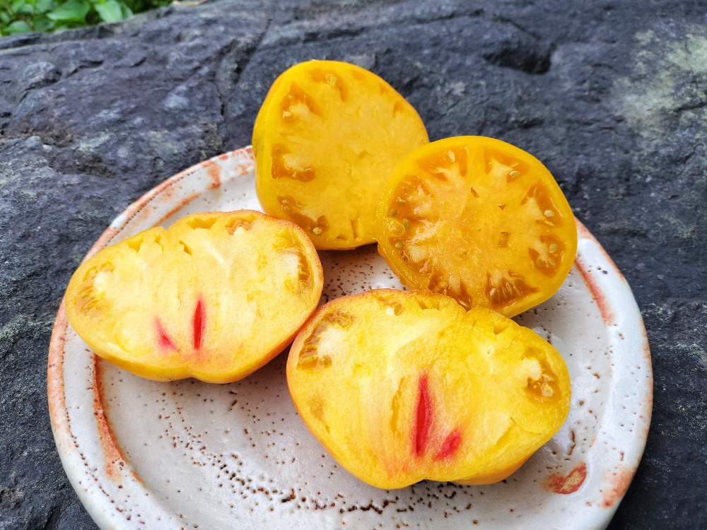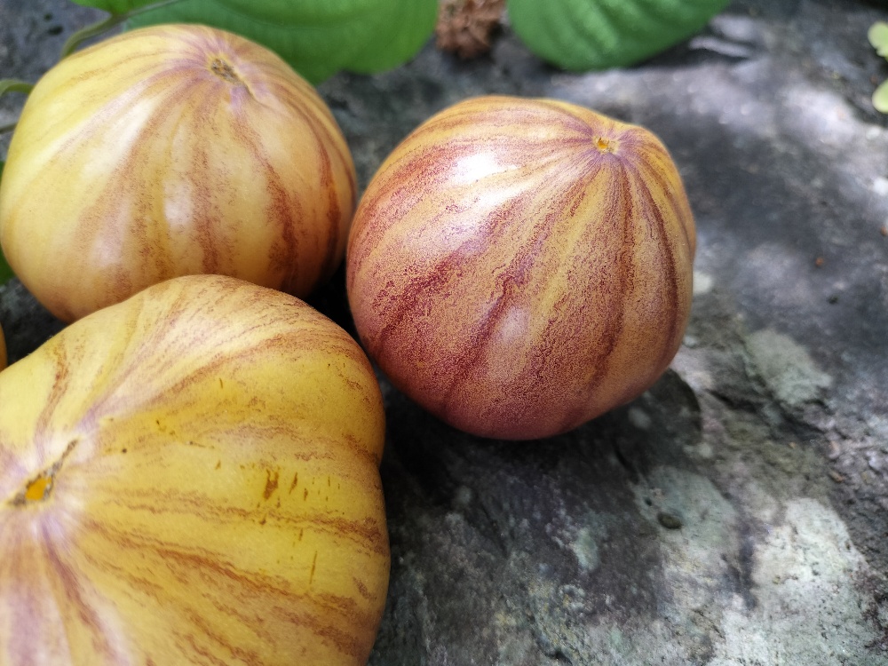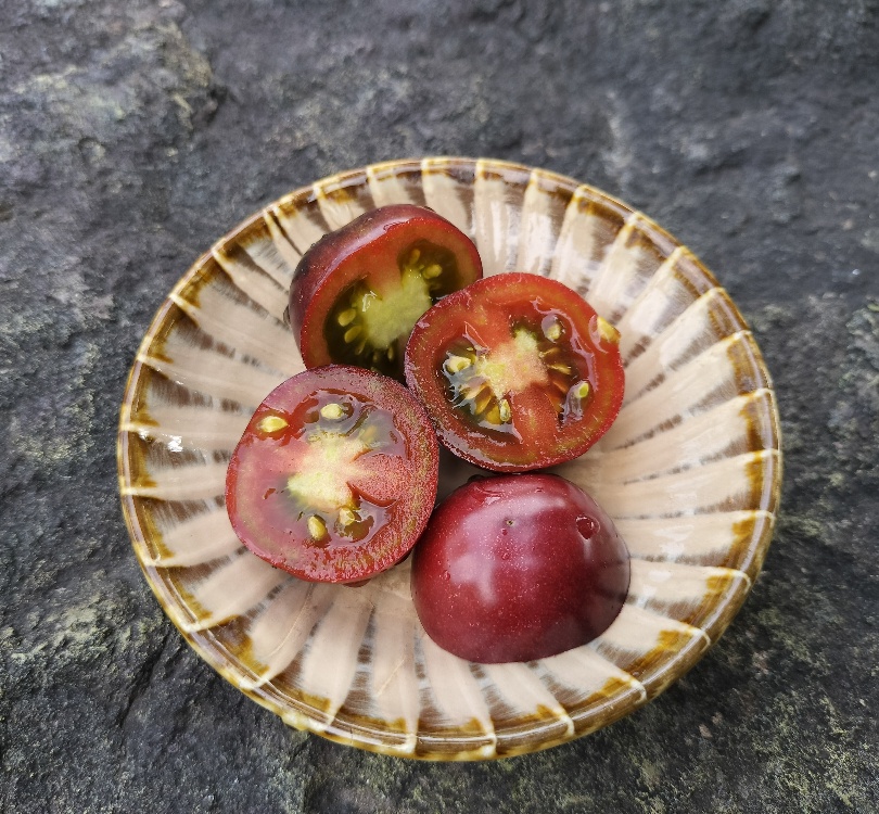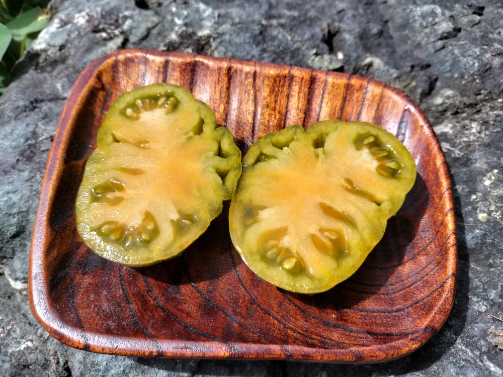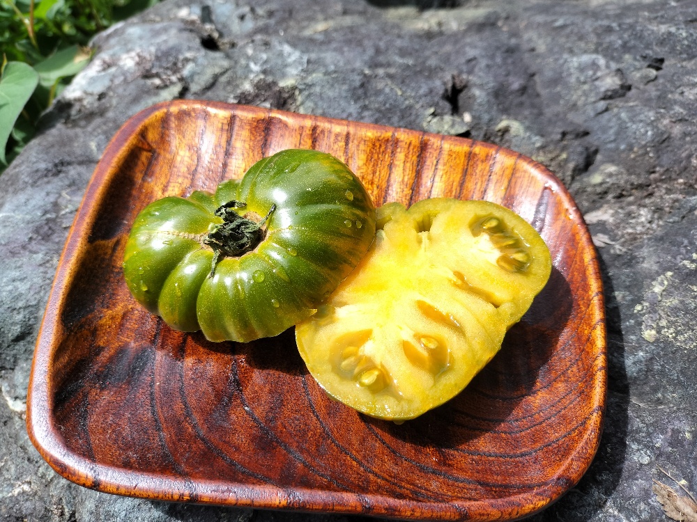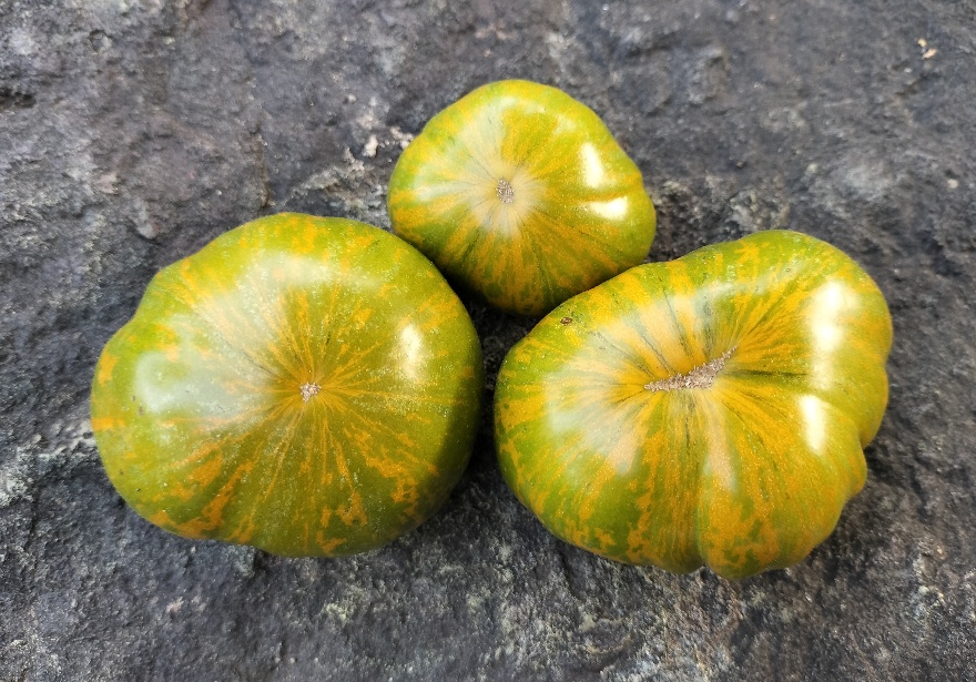 この果実は成熟するほど緑色のストライプがくっきりし、皮全体は赤みを帯び、果肉はマーブル模様が際立ちます。甘みと酸味が絶妙のバランスです。私と息子3歳が大好きなトマトです。