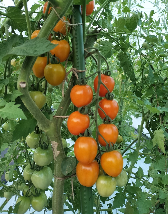 アントシアニンが多く肩部分が紫カラー強め、完熟してくると下部分からオレンジ→赤が濃くなってきます。育て方によりますが、放置してると収穫できない程たくさん実ります。