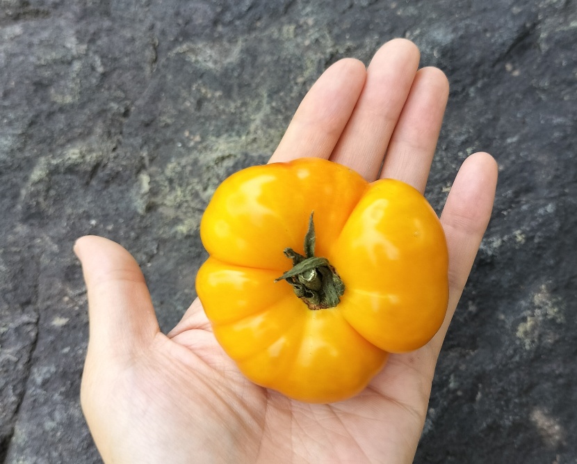イエローとオレンジのマーブル模様。とってもおしゃれな見た目。味はとってもフルーティーで甘くて香り豊か。トマトの青臭さとは無縁です。大好きなトマトの1つです。